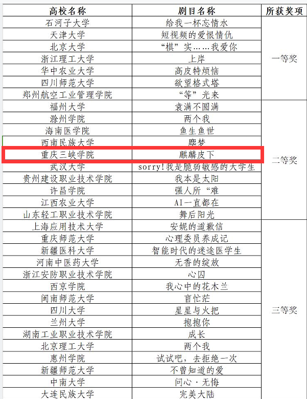 喜报 我校选送的心理情景剧《麒麟皮下》获得第七届全国高校心理情景剧现场展演全国二等奖