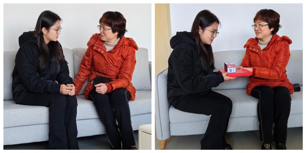 在温馨的社区心灵驿站,代远红与岳颖亲切交谈,详细询问她学习、生活情况,鼓励她充分利用学校资源,做好职业规划,争取在学业上取得更好的成绩。交谈中,代远红还关心学生是否存在实际困难和具体问题,对学生进行了帮扶、指导。最后,代远红为岳颖赠送了暖心的礼物,并寄语该生,希望她勤奋学习,砥砺前行争做有理想、敢担当、能吃苦、肯奋斗的新时代大学生。