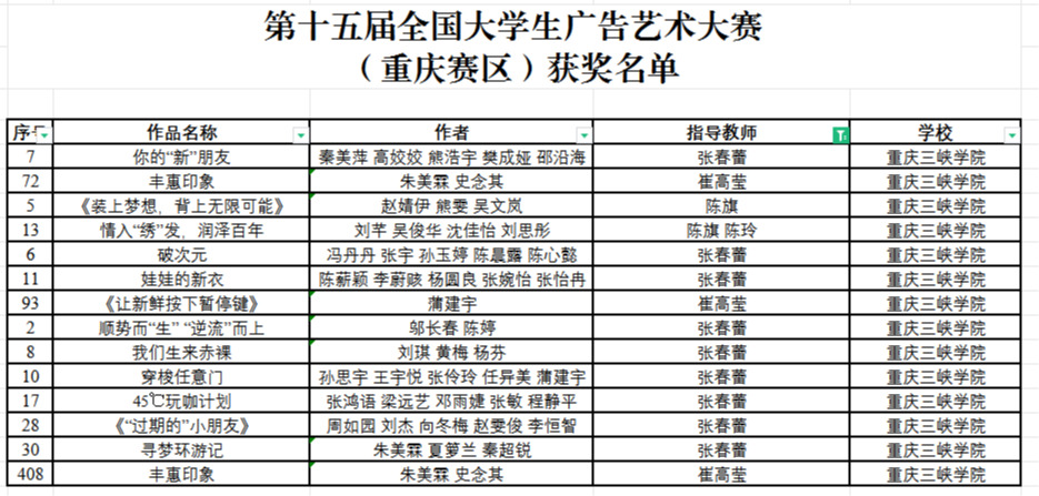 近日,第十五届全国大学生广告艺术大赛重庆赛区竞赛落下帷幕,我院教师党支部多名党员教师指导的学生参赛作品斩获佳绩。此次比赛我院共有14件作品获奖,其中一等奖2项,二等奖5项,三等奖7项。党员教师张春蕾指导的作品《你的“新”朋友》荣获策划类一等奖(学生秦美萍、高姣姣、熊浩宇、樊成娅、邵沿海);党员教师崔高莹指导的作品《丰惠印象》荣获平面广告一等奖(学生朱美霖、史念其)。崔高莹、张春蕾老师荣获重庆赛区优秀指导老师称号。