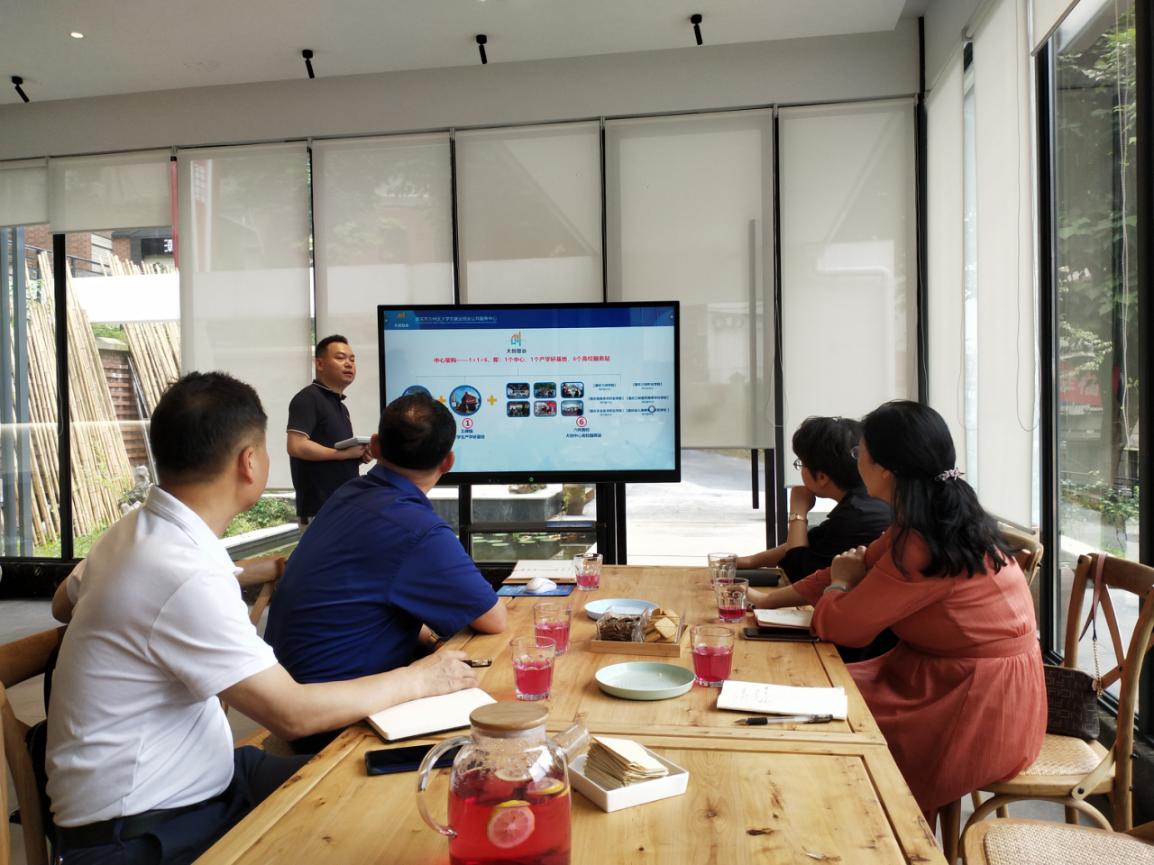 62日下午,9728太阳集团,9728见好就收才是赢党政领导以及教师代表一行4应邀前往重庆三峡广告产业园考察交流产业园董事长汪燕、副总经理程健热情接待了一行人。