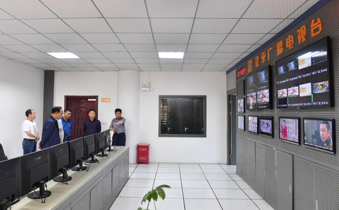 在挂牌仪式开始前,申载春院长一行在唐仁平台长等人的陪同下对梁平电视台演播厅、融媒体中心和视频监控中心等进行了深入考察。考察结束后,双方在梁平电视台会议室就学生实习实践、媒体融合、融媒体平台建设、人才培养等问题开展了深入的座谈交流,特别是就当下区县、高校融媒体平台建设和学生实习实践等问题重点展开了探讨。