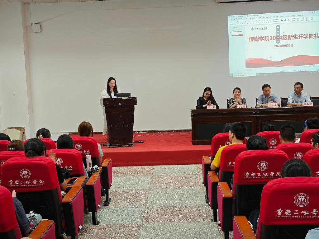老生代表学生会主席江清然同学结合自身经历向新生们描绘了美好的大学生活,鼓励同学们积极参与学院活动,拓宽知识视野,虚心接受师长与前辈教诲。紧接着,广播电视学新生代表陈莉媛、研究生新生代表高诗砚围绕学习规划表达了对人生新篇章的憧憬和对未来的坚定信心。她们呼吁大家要勇于探索,敢于尝试,珍惜时光,勤奋学习。