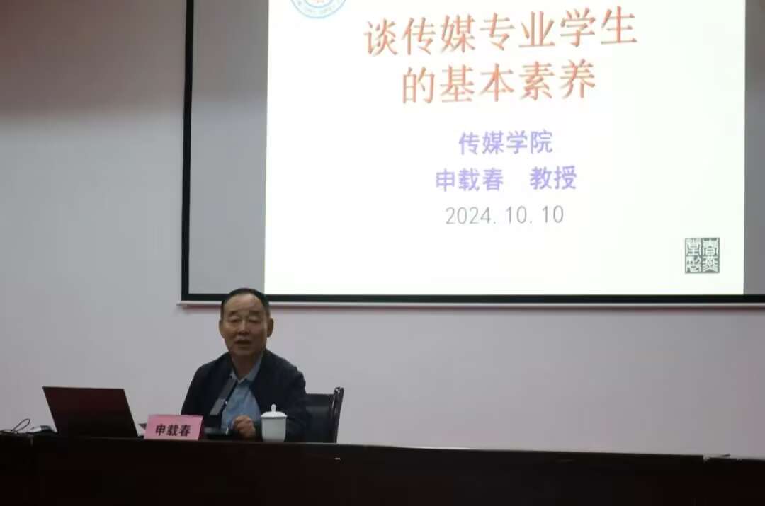 讲座伊始,申教授以当下传媒行业的迅猛发展为背景,强调了传媒专业学生提升基本素养的重要性。他指出,在信息时代背景下,传媒行业面临着前所未有的机遇与挑战,作为未来的传媒从业者,学生们必须具备扎实的专业素养和全面的综合能力,才能适应行业的发展需求。