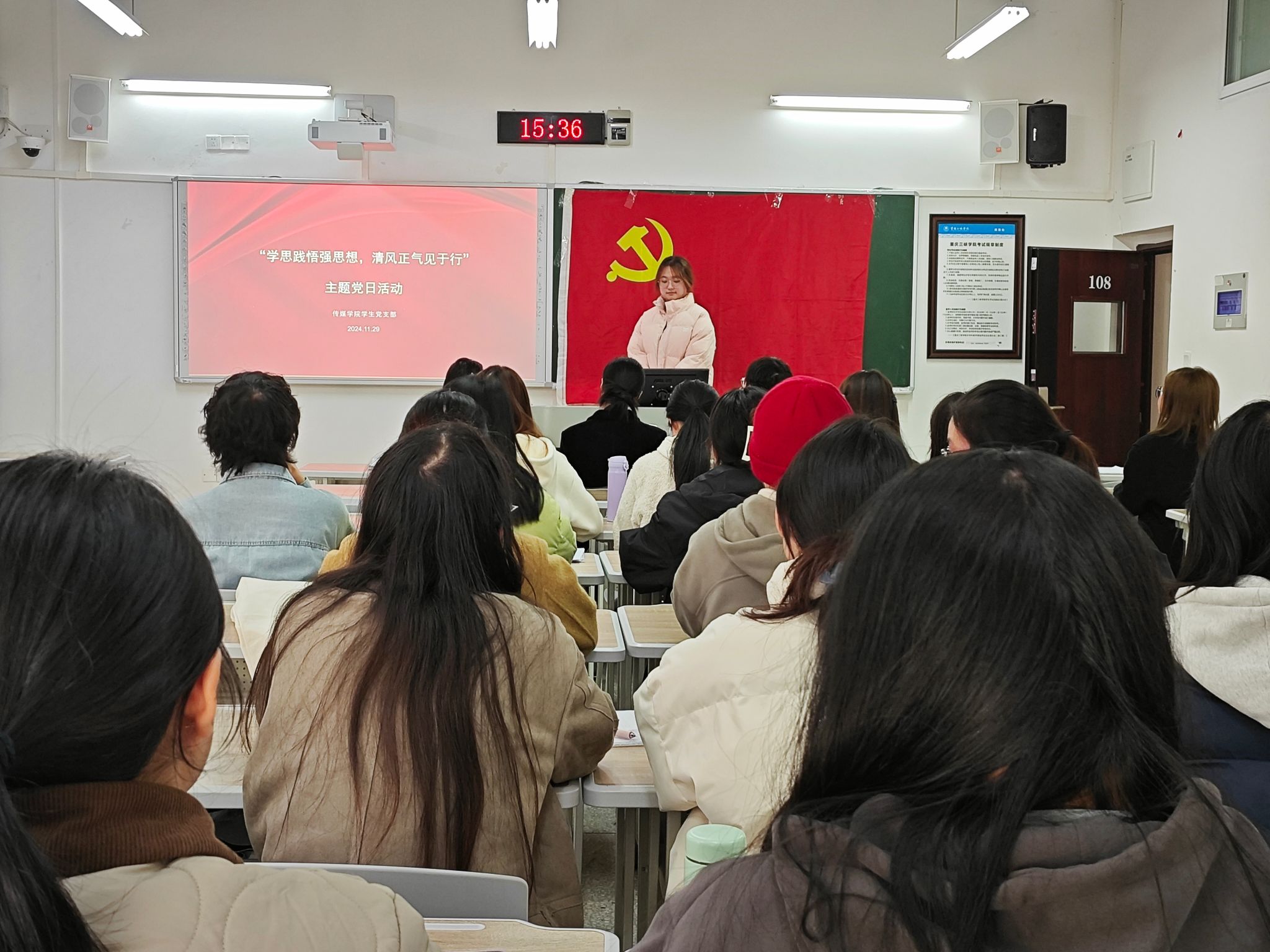 为促进廉洁教育入心入脑入行11月29日,9728太阳集团学生党支部成功开展了主题为“学思践悟强思想,清风正气见于行”的学习活动支部党员积极参与共同探讨活动由党支部书记殷汭君主持