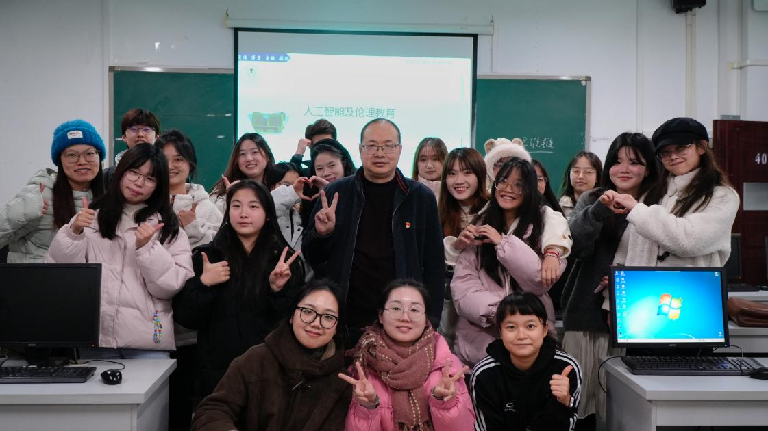 “生成式AI及应用”课程伊始,余老师在教室外的走廊开启了一场别开生面的讲解,带领同学们回溯计算机的诞生与发展历程。他详细介绍了从乔治・布尔、克劳德・香农到计算机之父艾伦・麦席森・图灵等一众为计算机发展作出卓越贡献的杰出学者,使同学们对计算机的演进脉络有了清晰认知。