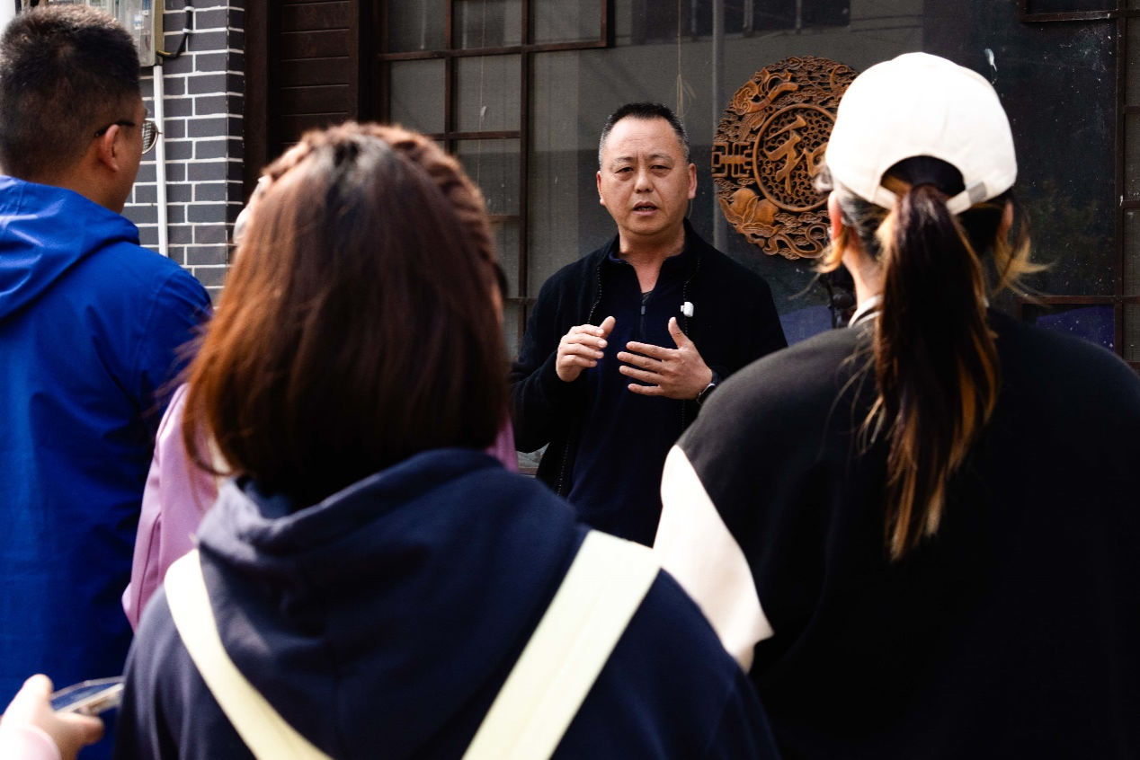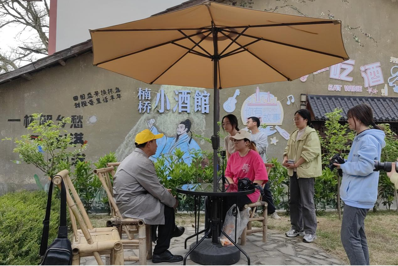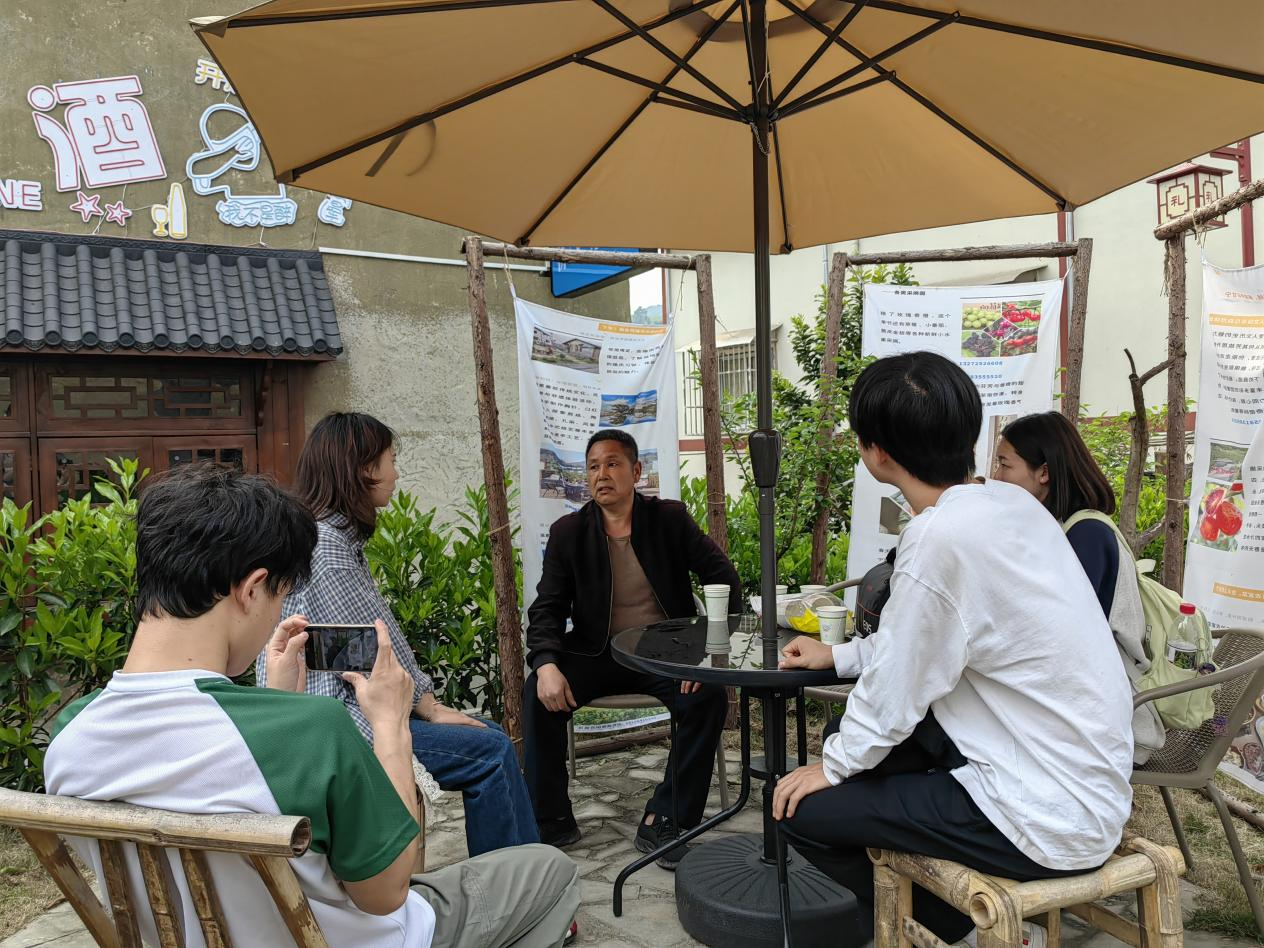 随后,团队抵达甘宁镇楠桥村,重点调研玫瑰香橙种植基地与古树别院民宿集群。农艺师刘兴凡介绍,该村通过生态种植玫瑰香橙,村集体经济收入突破25万元,并依托民宿产业打造“农旅融合”新模式。学生程雨虹表示:“传统建筑与现代美学的结合,为乡村空间活化提供了灵感。” 同学们还在这里分组采访了玫瑰香橙种植大户、古树别院负责人、经营户以及村干部。