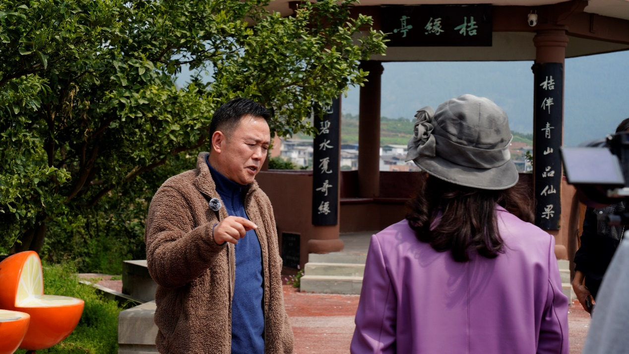 随后,团队转赴小周镇小周村,聚焦非遗红桔与“三生文化”进行调研。该村依托“三月红”采摘节和三生文化园,年游客量达5万人次,节庆活动带村民收入增长30%。新时代文明实践中心主任陈斌介绍了三生文化的内涵并指出“‘三生有幸’文化对小周及万州文旅发展的重要性。 ”美术学院教师丁鸣提出,将带领学生设计红桔主题文创产品,助力品牌升级。