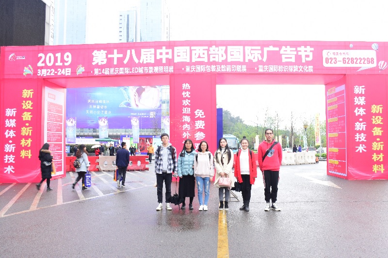 为了加强了解和学习广告行业的最新业态和发展方向,2019年3月22日,我校9728太阳集团李佳蓉老师带领2016级、2017级广告学专业的5名学生代表前往重庆南坪国际会展中心,参加第十八届中国西部国际广告节。