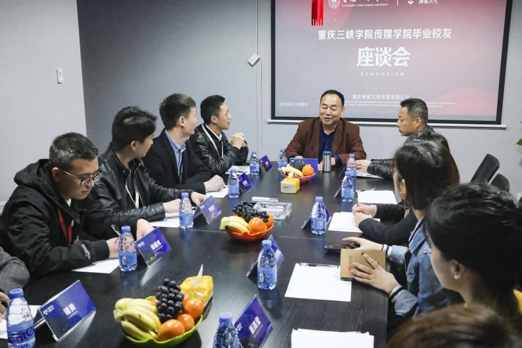 2015届广播电视学专业陈博、2016届广播电视学专业蒋锐、2017届广告学专业王跃、胡雅雯等毕业生代表踊跃发言,分享了自己工作心得或创业经历,并结合传媒工作,对我院人才培养提出了诸多宝贵意见和建议。重庆咪狐文化传媒有限公司总经理王海平在会上谈到,传媒人才培养最重要的是激发学生的兴趣爱好,这是让学生产生内驱力的重要途径。此外,他认为最好的传媒教育是以项目推进带动的教与学,让学生学有所用,以用促学。他也真诚希望与我院共建人才实习实践基地,培养更多的优秀传媒人才,服务于重庆的传媒事业。