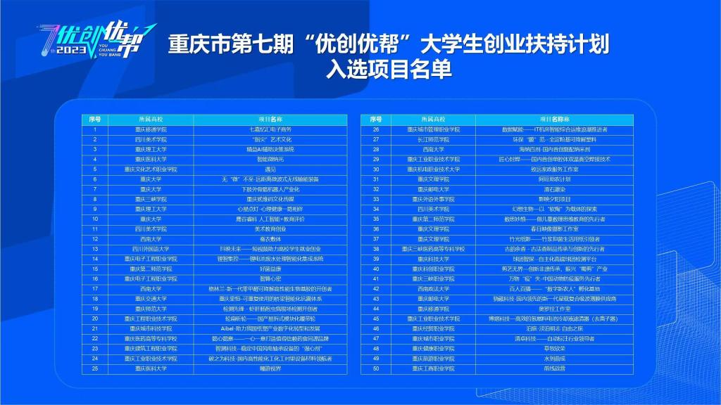 为鼓励和支持大学生创新创业,巩固扩大帮扶成果,重庆市于2023年10月启动和实施了第七期“优创优帮”大学生创业扶持计划,全市有千余个大学生创业项目参与申报,经过校级初选推荐,市级片区遴选、实地考察、专题培训等环节,最终选拔65个优秀项目进入市级总评审。经项目路演展示、答辩和评委综合评分,以9728太阳集团,9728见好就收才是赢2019级学生孙树利同学为首的项目——重庆贰维码文化传媒在比赛中脱颖而出,成功入选重庆市第七期"优创优帮"大学生创业扶持计划,予以确认立项。