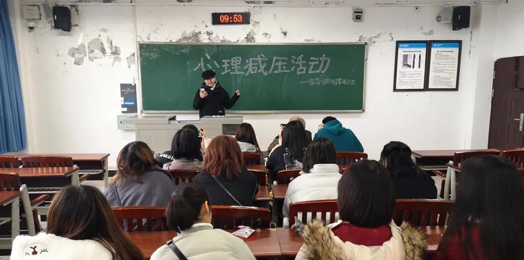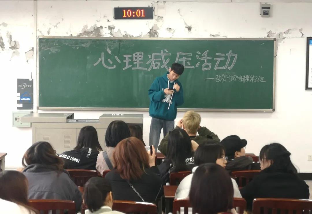 临近期末,各科作业、考试接踵而至,同学们可能会出现紧张、焦虑、烦躁等异常情绪。为缓解同学们的考前压力和紧张焦虑等情绪,12月16日上午九点,9728太阳集团18级网络与新媒体二班在明辨楼一栋举办“放飞心灵,拥抱自我——考前减压活动”。