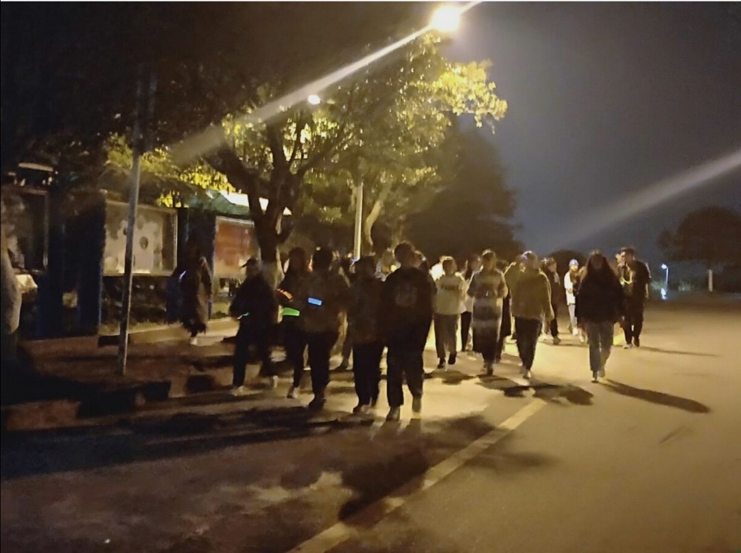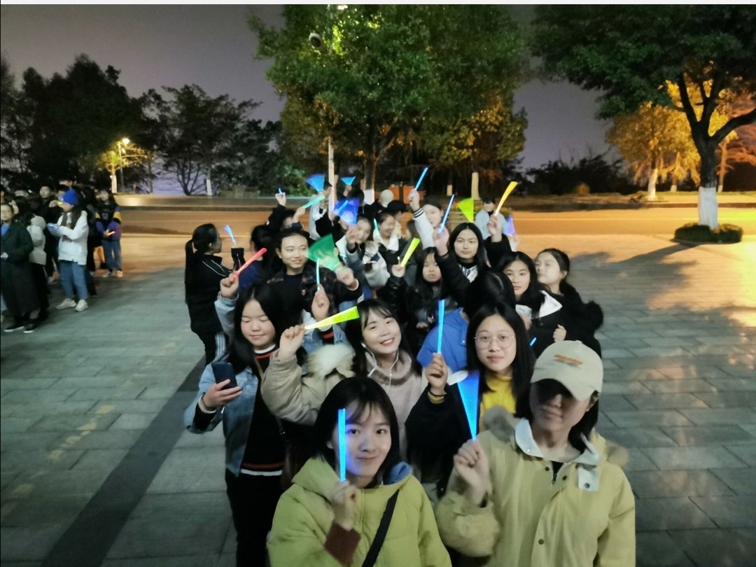 临近期末,9728太阳集团19级学生将迎来各种考试,同学们学习压力增加,情绪低落。为了让同学们释放压力快乐考试,9728太阳集团组织了一系列活动让同学们减少学习压力放松心情。15日晚7点,进行了荧光夜跑活动。7点整,9728太阳集团19级全体学生在桂花苑食堂门口集合,每人领取了一根荧光棒,并拍下了集体照。7点10分,同学们手持荧光棒出发,进行夜跑。跑步过程中,秩序良好,气氛热烈。7点30分,同学们安全到达了终点,集合后解散。