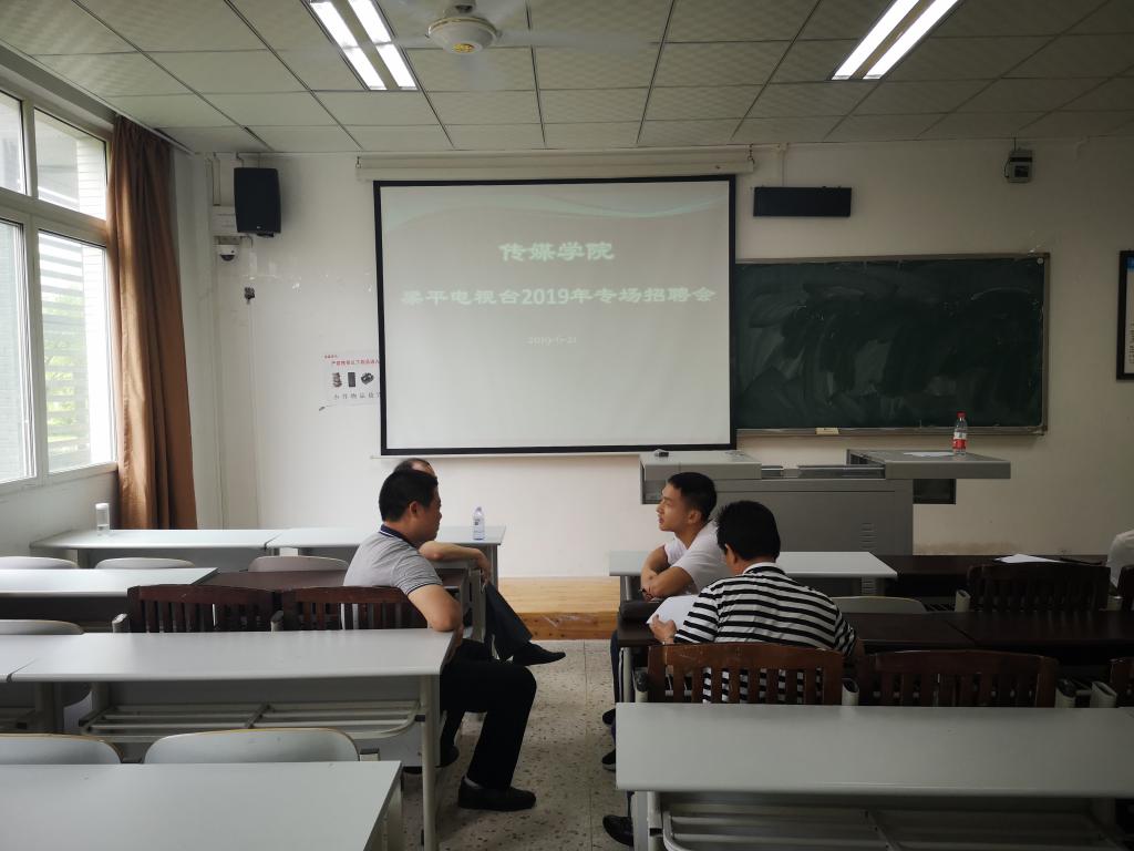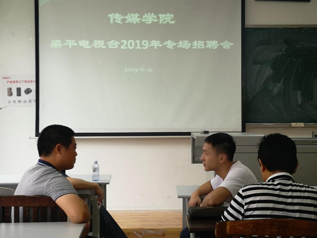 6月21日上午,梁平电视台姜升辉台长一行3人到我院选聘人才。选聘会在明辨楼一栋208教室举办。2015级、2016级部分学生参加了面试。