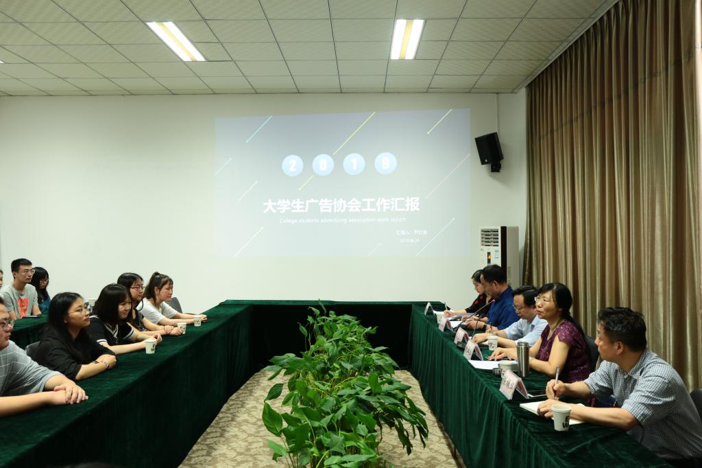 会议开始,大学生广告协会会长尹红圣从协会的概况、功能作用、发展现状、工作成绩以及展望未来这五大方面向各位领导做了详细介绍。大学生广告协会成立于2015年,是校内最年轻、颇具活力的社团之一。协会里,干部和会员配合默契、团结协作,让大学生广告协会茁壮成长。目前,广告协会获得了“大学生广告艺术节学院奖”一个银奖、5个铜奖,“one show”金铅笔国际广告大赛优秀奖等专业奖项。在获得诸多荣誉之外,广告协会承办了许多专业竞赛以培养协会会员的创新思维,还开展了兴趣活动让会员在丰富多彩的活动中了解广告的魅力。尹红圣在谈及未来时表示,大学生广告协会将在组织规范、协会合作、部门改革、活动多样、以赛促练等方面做出改进,让协会不断优化创新。