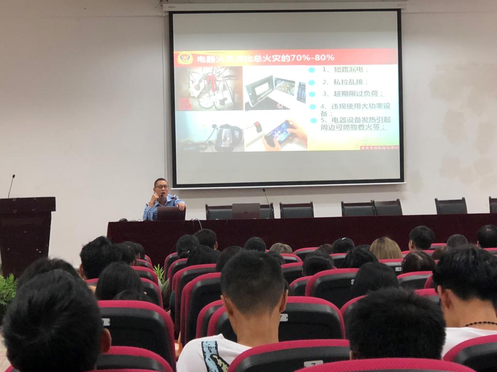 2019年9月25日,在明辨楼二栋106会议室举行9728太阳集团新生入学教育之安防教育讲座,邀请利民消防的钟教官讲解。
