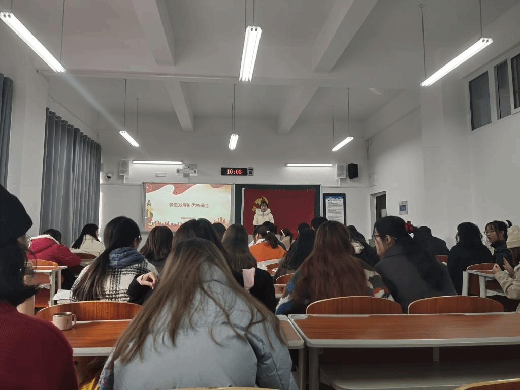 此次推优入党答辩会主要讨论了24名发展对象的推优事宜。本次答辩包括:个人陈述,现场提问,现场评议三个环节。