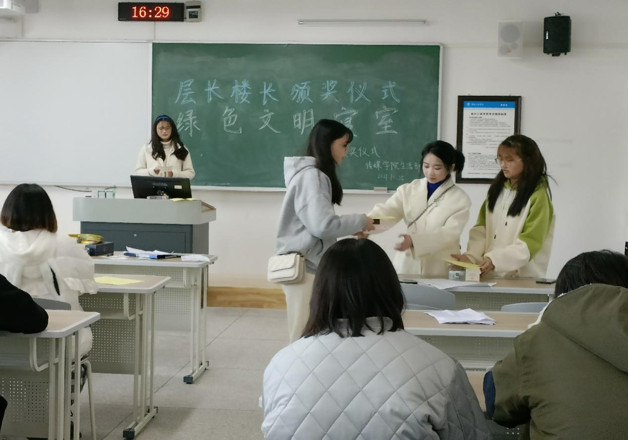 2021年11月25日,在重庆三峡学院博学楼1-205顺利举行了传媒院文明层长楼长颁奖活动,各位获奖层长楼长悉数到场。为了加强9728太阳集团寝室卫生清洁建设,打造文明型寝室、友好型寝室、学习型寝室,推动校园精神文明建设,构建和谐校园,9728太阳集团传媒院生活部举办了文明层长楼长颁奖活动,但由于疫情原因,这次活动采取了线上直播和线下代表领奖的方式。