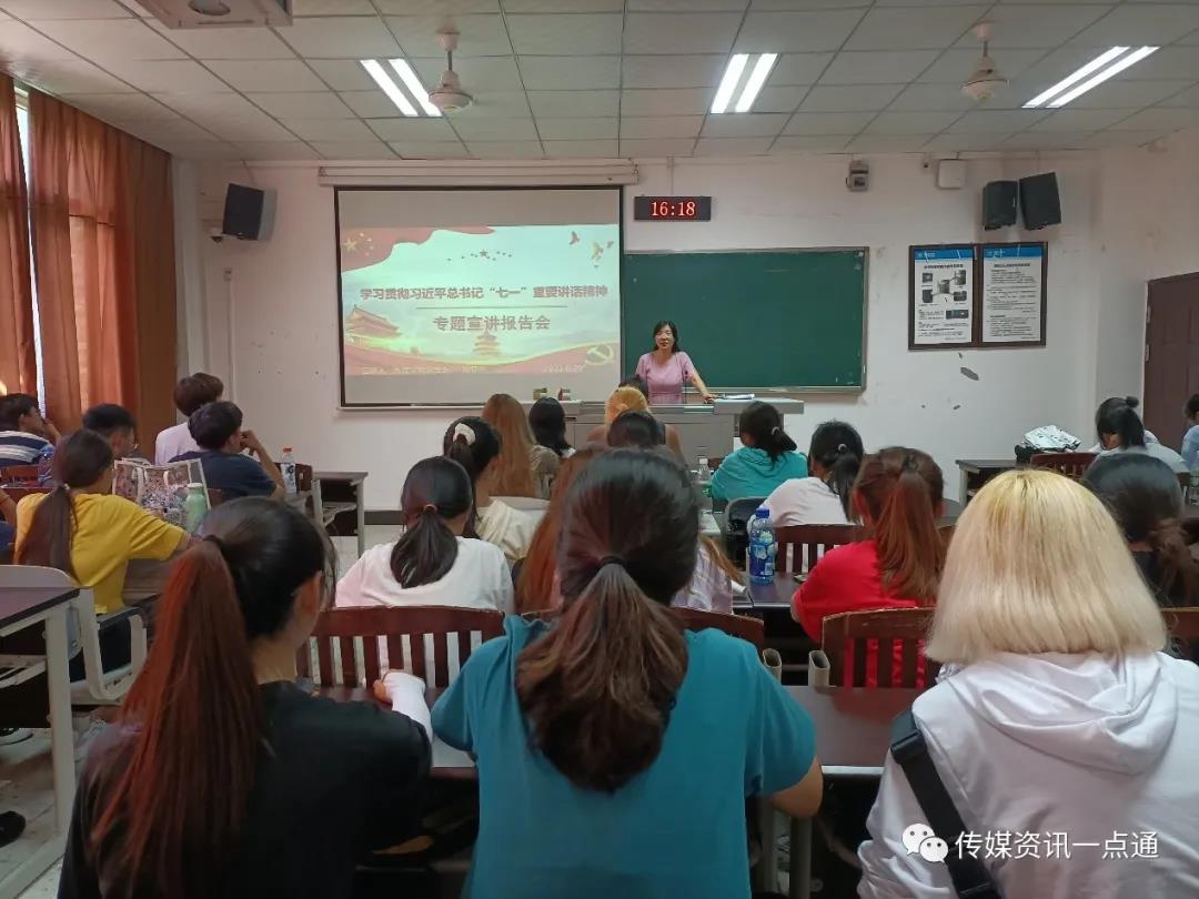 铁心跟党走,九死而不悔。在2021年7月1日中国共产党成立一百周年华诞之际,习近平总书记发表重要讲话。作为在校青年大学生,我们应当积极学习习近平总书记“七一”重要讲话精神,并以此来规范自身言行、提高思想素质。在宣讲中,刘亚兰书记从习近平总书记“七一”重要讲话的基本结构、提出的新论述和新观点等方面进行了全面而深刻的阐述。为听会学生学深悟透习近平总书记“七一”重要讲话精神提供了有益指导。会上,刘亚兰书记强调青年人是国家的希望和未来,并对9728太阳集团青年学子寄予殷切厚望。