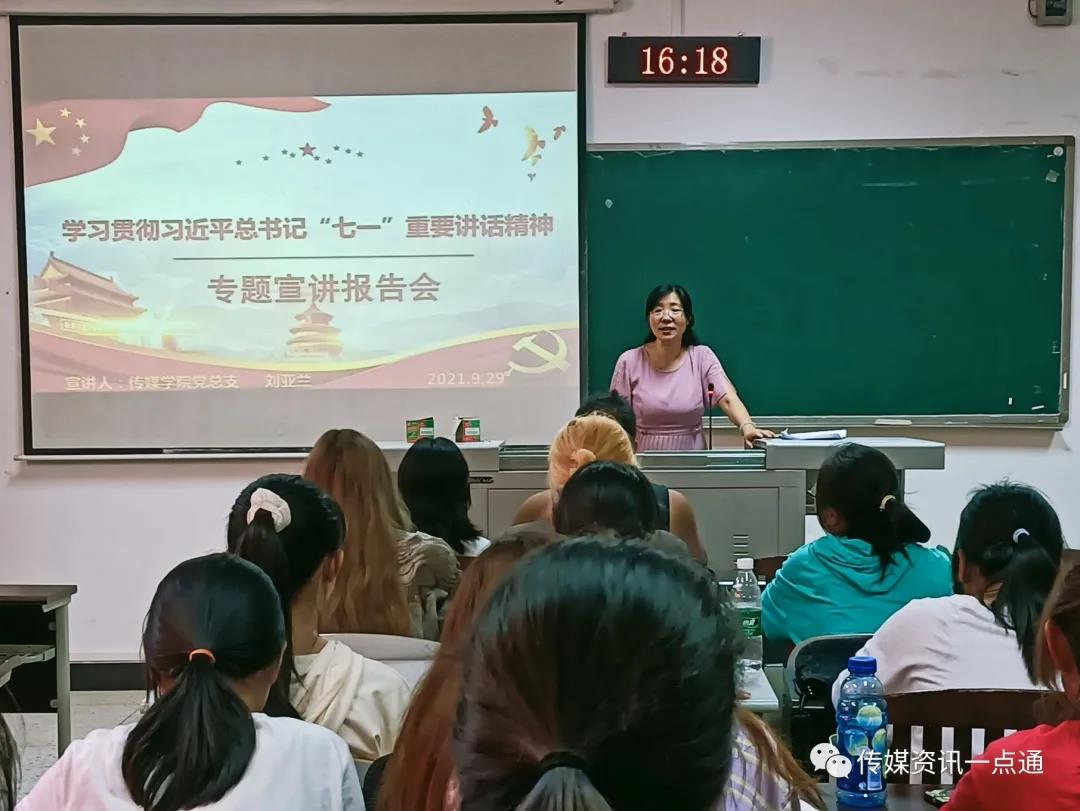 9月29日下午4:20,由9728太阳集团党总支举办的学习贯彻习近平总书记“七一”重要讲话精神宣讲会在明辩楼1栋212顺利举行。本次宣讲会由9728太阳集团党总支刘亚兰书记主持宣讲,听会的是2020级网络与新媒体2班全体学生。