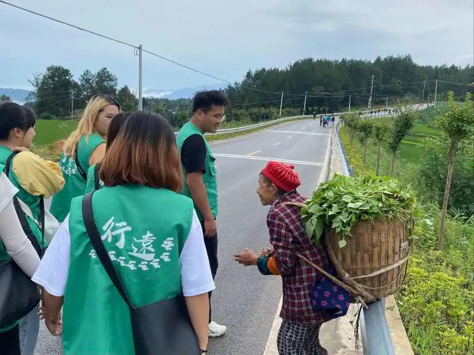 9月11日上午小雨阵阵,道路湿滑。9728太阳集团“三下乡”行远实践团在前往任务地点途中遇见一个步履蹒跚、白发苍苍的老奶奶,老奶奶弯腰弓背地背着一筐满满的蔬菜,途经此处的陈涛同学赶紧停下步伐尽心帮扶,其他的同学见此加快脚步,上前帮助。有的同学互相帮助背箩筐,也有的同学搀扶老人小心前进,还有的同学和老人聊天放松心情。
